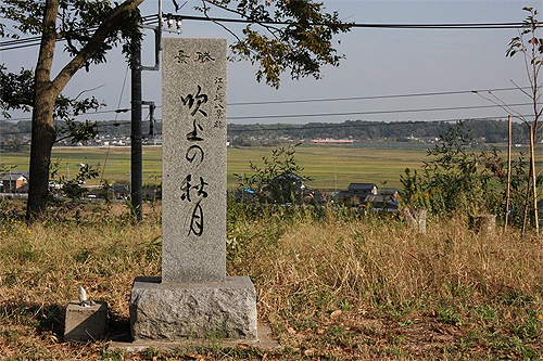 眼下に広がるのは稲波干拓。その昔、干拓される前は榎ヶ浦と言われていた湖で、湖面に移る秋の月が美しかったと言われています。