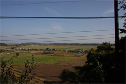 江戸崎入干拓(かつての湖面)を見下ろす風景。 ここから駒塚(こまつか)方面の坂を登ると、江戸崎のまちなか〜その先に筑波山を見渡す事ができます。 【画像をクリックすると拡大します。】