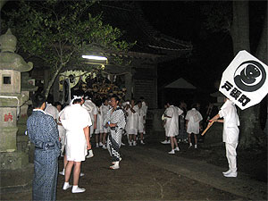 神輿がお仮屋に鎮座すると、これまでと同じような要領で御神酒奉盃の儀があり、神官のあいさつがあって第1日目が終了します。![]() |