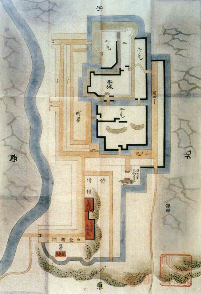 【右:江戸崎古城図(広島市立中央図書館浅野文庫蔵「諸国古城之図」)より】