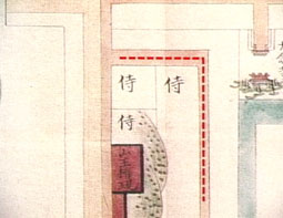 「古城図」に表されている侍屋敷付近。土岐氏の重臣が住んでいた場所で、江戸崎城を防御する最大の要とされていた場所である。