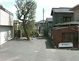 城内にはいるとクランク状態に道が曲がっている。西町、大念寺前。敵を迎え撃つのに適したつくりになっている。