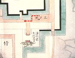 3.大念寺前にある現在の切通のクランクが、図中にも見える。