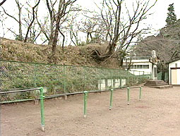 2.現在の江戸崎小学校裏手の山が本城に当たり、現在の鹿島神社南側の堀跡が本城と二ノ丸の間の堀と推定される。