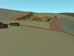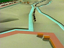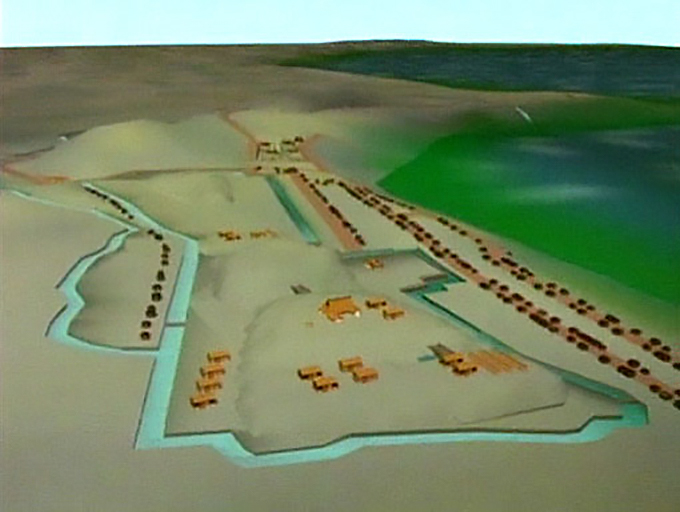 CGで再現した江戸崎城と江戸崎の街並み。現在の江戸崎の街並みの原型が既に構築されている。