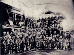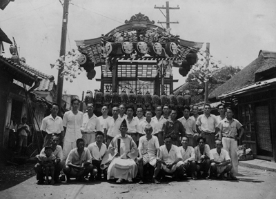 【左】昭和23年に撮影された「浜町」の山車です。戦争が終わり楽しそうな雰囲気が表情から感じとれます。