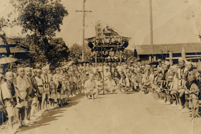 【左】大正時代の「切通町」の山車。時代を物語る祭り衣装に注目。