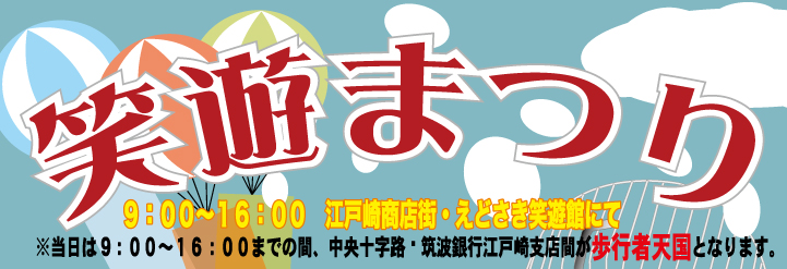えどさき笑遊館を中心に年に一度開催される「笑遊まつり」!江戸崎商店街メインストリートを中心に様々なイベントが開催されます。